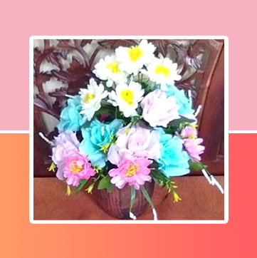 Rangkaian bunga meja dengan menggunakan bunga yang segar dan cantik.