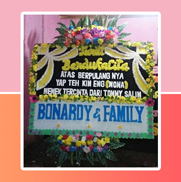 . Bunga Papan Duka Cita dengan hiasan Bunga Plastik