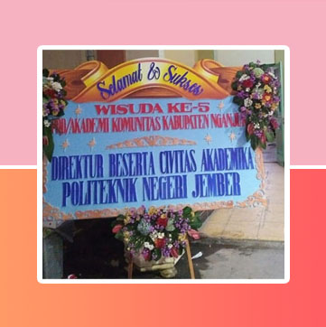 Bunga Papan Untuk ucapan selamat ini berukuran 200cmx150cm. Dihiasi dengan bunga Jmabul 3 titik (Kanan Kiri dan Bawah)