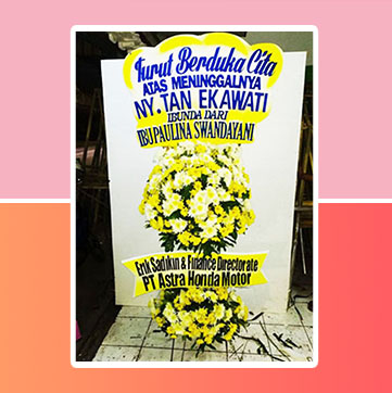 Rangkaian bunga standing dengan menggunakan bunga yang segar dan cantik.