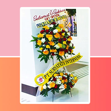 Rangkaian bunga standing dengan menggunakan bunga yang segar dan cantik.